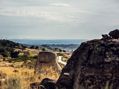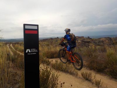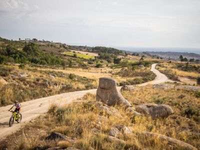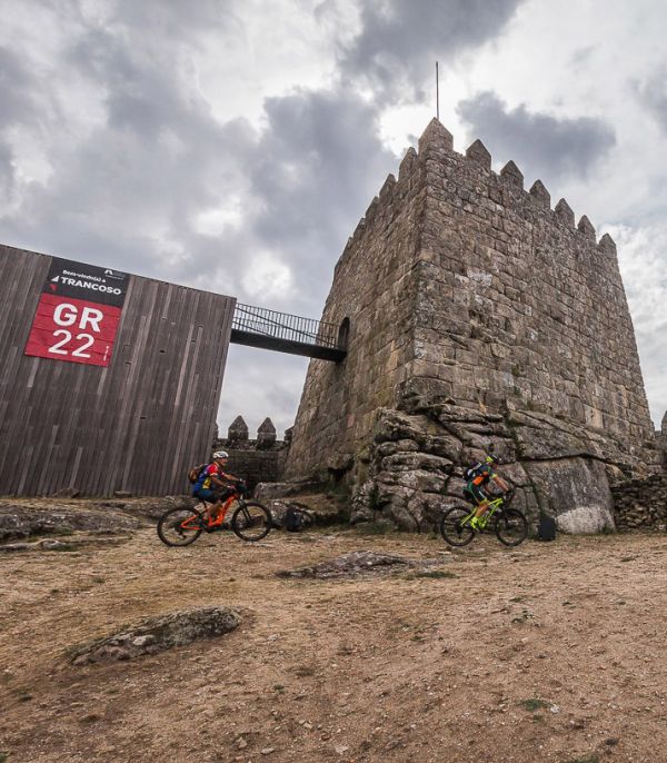 The route leaves from Cidadelhe along a plateau and agricultural area, heading south to Juízo. There, it turns northwest and descends into the valley of the Massueime stream, which it crosses shortly after. Leaving the valley, it passes through Gateira, after which it crosses a mixed and flat landscape, overlooking Marialva and its castle. When they reach the IP2, the GR22's pedestrian and cycling paths diverge in their trajectory. The cycling route crosses the IP2 in the area of the junction, passes through Devesa and goes up to the castle from the south side. Marialva is the northernmost village of the GR22 - Great Route of the Historical Villages of Portugal, and the route now heads south, descending to the devesa of this Historical Village, where it leaves the previous leg. Continuing on a dirt road, it crosses the bridge of the Marialva stream and heads towards Rabaçal, now mostly towards west, up to Esporões. After crossing this village, it follows forest roads, which progressively become agricultural paths as it approaches Moreira de Rei and its curious granite formations. From there, and already together with the “Guardians of the Plateau” route, this leg continues south until Castaíde, where it finds the Azedo valley, which it then follows until it starts the final climb to the Historical Village of Trancoso.