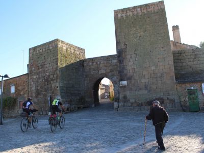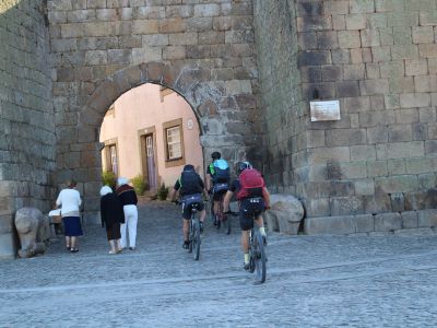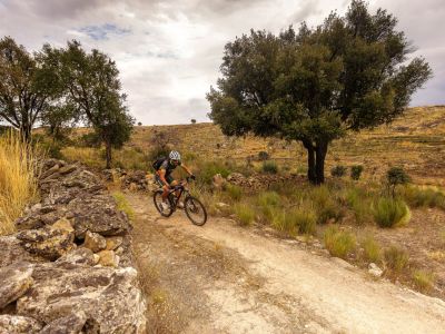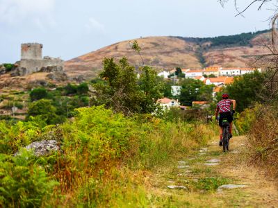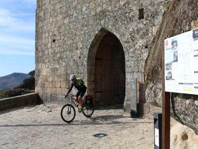 Leaving the Historical Village of Almeida by the bike path that goes around the wall, the route heads north on a dirt track, to cross the Alvercas stream and then follow grazing paths until it reaches Malpartida. The route crosses the EM604 and goes through plains overflown by birds of prey, approaching the Tourões river, a natural border with Spain. It continues on a dirt road, through grazing paths with gates, and then along farmland paths, crossing again the EM604 near Vermiosa and heading north through plots of land. The route passes Cruzeiro de Roquilho and returns to the EM604 tarmac on arrival at Almofala. It continues north, through cobblestone which then gives way to a dirt road and converges with the road towards Mata de Lobos. After a small stretch of tarmac, the route heads right to leave the road, going back to the dirt road, crossing plots of farmland until after Mata de Lobos. From there, the route changes its general direction. Going west now, it will cross the Aguiar stream and, together with the PR3 FCR route, it will climb up to the Historical Village of Castelo Rodrigo, which is already watching from above, passing by the Convent of Santa Maria de Aguiar. The path leaves behind the Historical Village of Castelo Rodrigo, heading west along the PR2 FCR route, predominantly on dirt, towards the Côa valley, around the Serra da Marofa and past Freixeda do Torrão. At the intersection of the tarmac road that connects Cidadelhe to the villages on the right bank and when it reaches the gate of Reserva da Faia Brava, a Private Protected Area, the route joins the Côa Great Route to abruptly descend the valley, cross the river and start the demanding climb of the slope, gaining different views of the river valley. The bike path GR22 follows the tar road and, higher up, the presence of cork oaks announces the arrival at Cidadelhe.