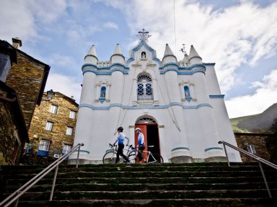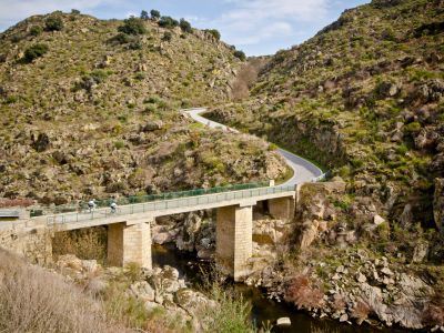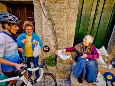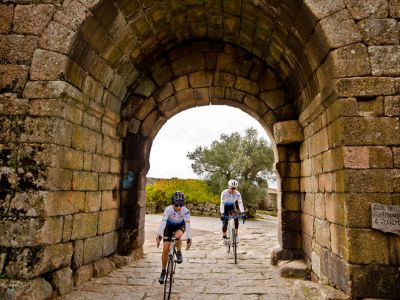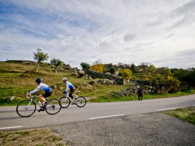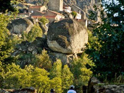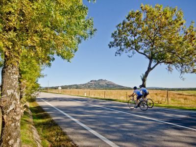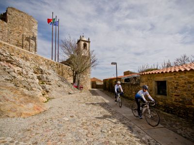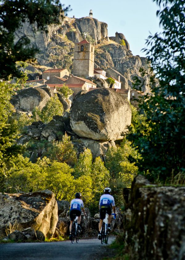 Saímos para este percurso na base da Aldeia Histórica de Monsanto, na localidade de Relva, virando pouco depois à direita para Eugénia e de seguida à esquerda para cruzar a N239 em direção a Salvador. Antes da chegada a Salvador começa-se a sentir a ligeira subida da Serra do Ramilo, que nos levará a cruzar a aldeia e a virar para o lado este desta serra, com vistas magníficas para o vale feitoso na descida para Aranhas. À saída de Aranhas segue-se pela direita em direção ao Parque de Campismo do Freixial, onde cruzamos a ponte sobre o rio Bazágueda e subimos em direção ao Santuário da Sra do Bom Sucesso, muito próximos de Espanha. Depois de passar junto à capela, seguimos pela esquerda em direção a Penamacor, pela R346, cruzando de novo o rio Bazágueda, junto à sua barragem. À chegada à N233 seguimos pela esquerda, e depois viramos à direita para subir a Penamacor e cruzar as suas ruas. Conhecida com Vila Madeiro, merece uma visita atenta. De Penamacor seguimos para norte pela N233 sté passar Meimoa, virando à direita em direção à Barragem com o mesmo nome e a Meimão. A subida passa ao lado da barragem, onde existe um parque fluvial, e continua em direção a Meimão, tendo depois algum quilómetros em descida para a aldeia. Aqui inicia-se uma exigente subida com cerca de 3,5km e declives muito acentuados, que nos irá levar dos cerca de 600m de altitude de Meimão até aos quase 900m de altitude, onde encontraremos a N233, a sua ligação Sabugal - Penamacor. Seguimos pela esquerda, em descida para Santo Estevão e Terreiro das Bruxas, onde viramos à direita para Casteleiro. Cruzamos Casteleiro, Santo Amaro, Quintas do Espinhal e mais à frente, seguimos à direita para Carvalhal, já com Belmonte, altiva, no horizonte. Depois de passar em Carvalhal viramos pela esquerda, passando Estação de Belmonte e virando à direita no encontro com a N345, entrando na Aldeia Histórica pelo sul, e terminando no largo do Castelo.
