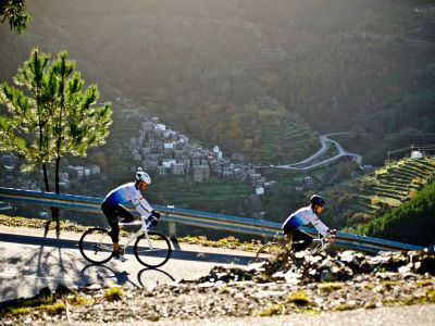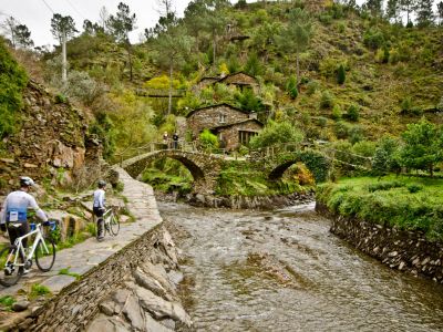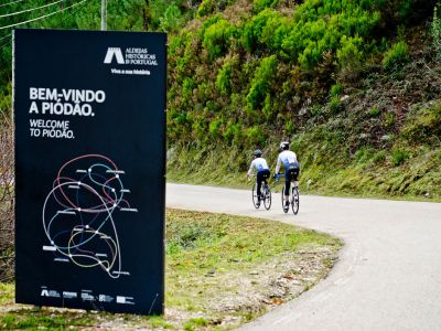 Saímos da Aldeia Histórica de Piódão em direção a Vide, seguindo o vale da ribeira do Piódão. A estrada é estreita, com piso de qualidade média até Foz D'Égua, e poderá haver circulação de veiculos nos dois sentidos. Após a passagem em Foz D'Égua a qualidade do piso piora (à data deste deste estudo) e torna-se bastante desconfortável até À chegada a Vide, onde entramos na N230 seguindo pela direita. A N230, é uma estrada de excelente piso, com declives suaves a médios, e vai subindo até ao alto das Pedras Lavradas, vencendo em 17,5km a diferença de altitude entre os 300m de Vide e os 860m de Pedras Lavradas. Em Pedras Lavradas seguimos À direita, para Sobral de São Miguel. O piso muda tornando-se mais irregular e a estrada fica mais estreita, continuando a subir, com as magestosas ventoínhas do parque eólico ao nosso lado esquerdo. As vistas sobre o vale de Teixeira, a serra do Açor, e a serra da estrela nas nossas costas, são fantásticas. Mais À frente seguimos pela esquerda, em descida para o Sobral. A estrada mantem-se estreita e com piso irregular, que se apresenta em mau estado em algumas zonas. De Sobral ligamos a Casegas e depois a Ourondo, onde pouco depois se cruza o rio Zêzere, chegando a SIlvares. Em Silvares entramos na N238, seguindo em constantes curvas e declives suaves em direção a Lavacolhos e depois Castelejo, que cruzamos saindo da N238 pela direita, até Vale Palaio. Aqui voltamos a entrar na N238 rumo a Souto da Casa, em subida, tomando pouco depois uma viragem à direita para as encostas de cerejais da Gardunha, por uma estrada municipal que nos levará até Alcongosta, com magníficas vistas para a Cova da Beira, à esquerda. Passamos as ruas empedradas de Alcongosta e seguimos pela encosta até apanhar a N18, virando à direita Gardunha acima, com declives médios. No alto uma viragem a 180º dá início à descida para a histórica aldeia de Alpedrinha, que merece uma paragem e visita atenta. De Alpedrinha continuamos em descida pela N18, até começarmos a avistar Castelo Novo, à direita, na encosta da serra. Viragem à direita na via de acesso à A23, seguimos em subida até à Aldeia Histórica, com os últimos 500m a obrigarem a um esforço final, devido aos declives acentuados. Terminamos no largo da bica, onde podemos refrescar-nos nos dias mais quentes.