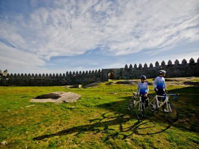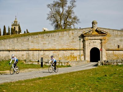 Saímos de Castelo mendo em direção norte, até à N16, com uma rampa algo íngreme, mas curta. Na N16 seguimos pela direita, descendo ao Vale do Côa, e subindo depois para Castelo Bom, aldeia que merece uma visita atenta. Aqui seguimos pela esquerda, abandonando a N16, continuando a subir até apanharmos a N332, que liga Almeida a Vilar Formoso. No cruzamento seguimos à esquerda e continuamos pela N332 até almeida. Esta via pode ter algum trânsito de ligeiros e pesados. À chegada à Aldeia Histórica de Almeida cruzamos a muralha pela porta sul e contornamos a aldeia pela esquerda, até chegar ao Picadeiro Real e terminar o percurso.