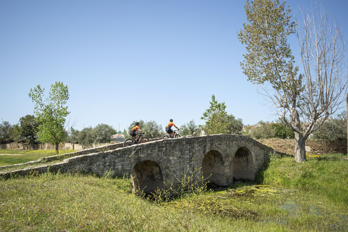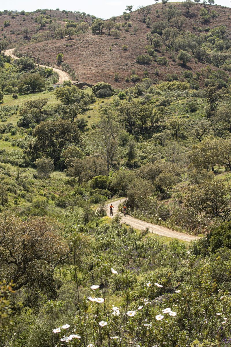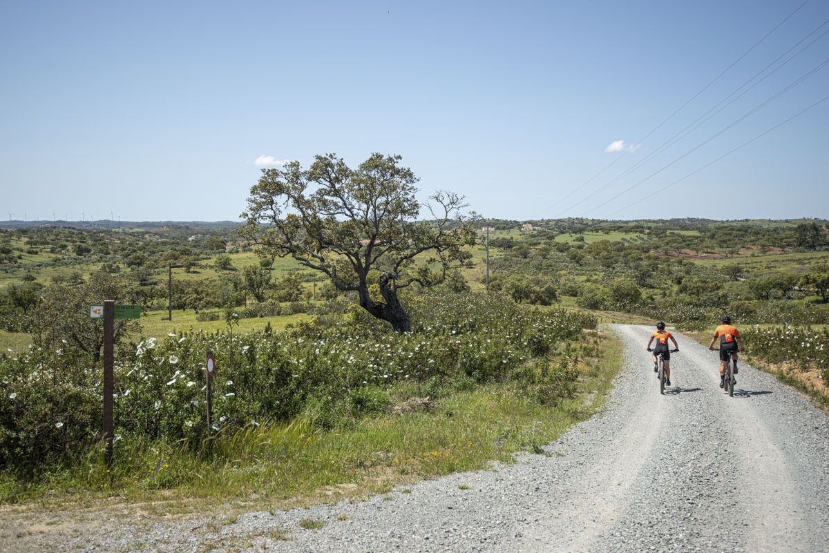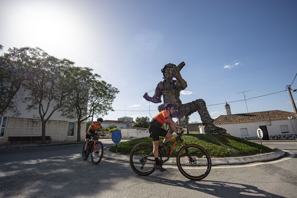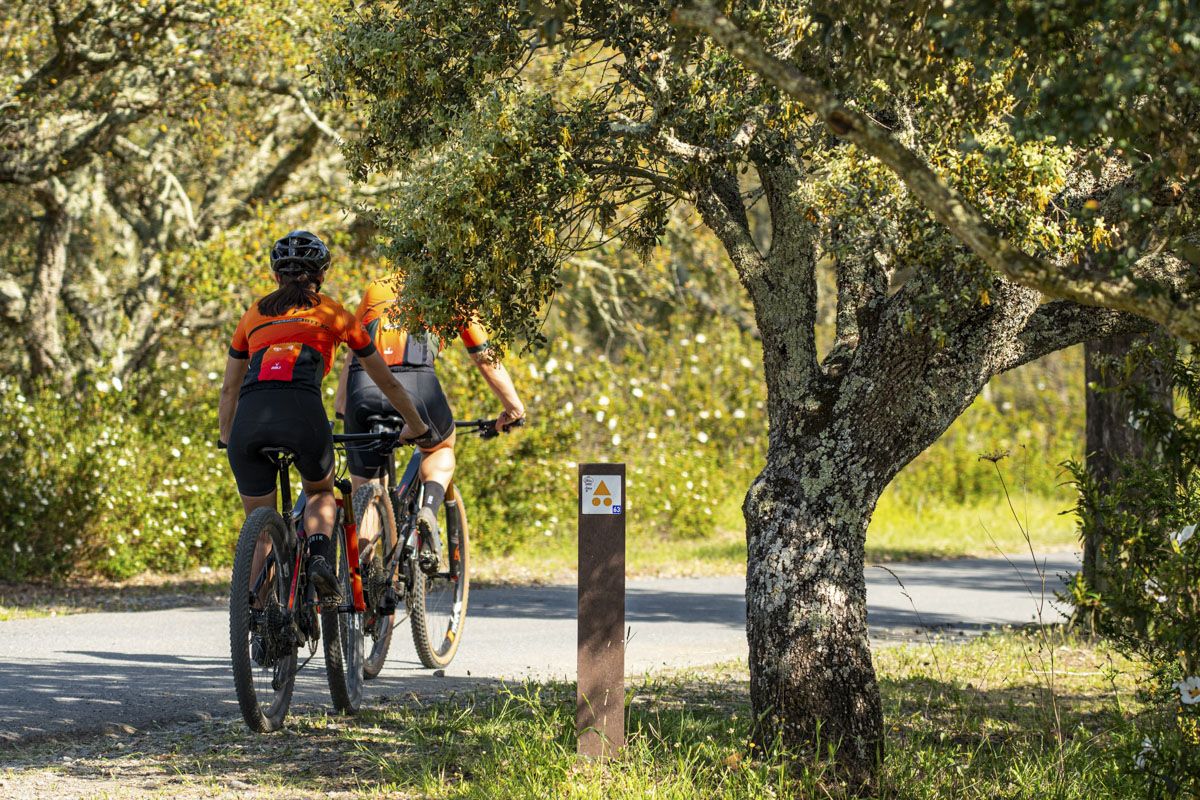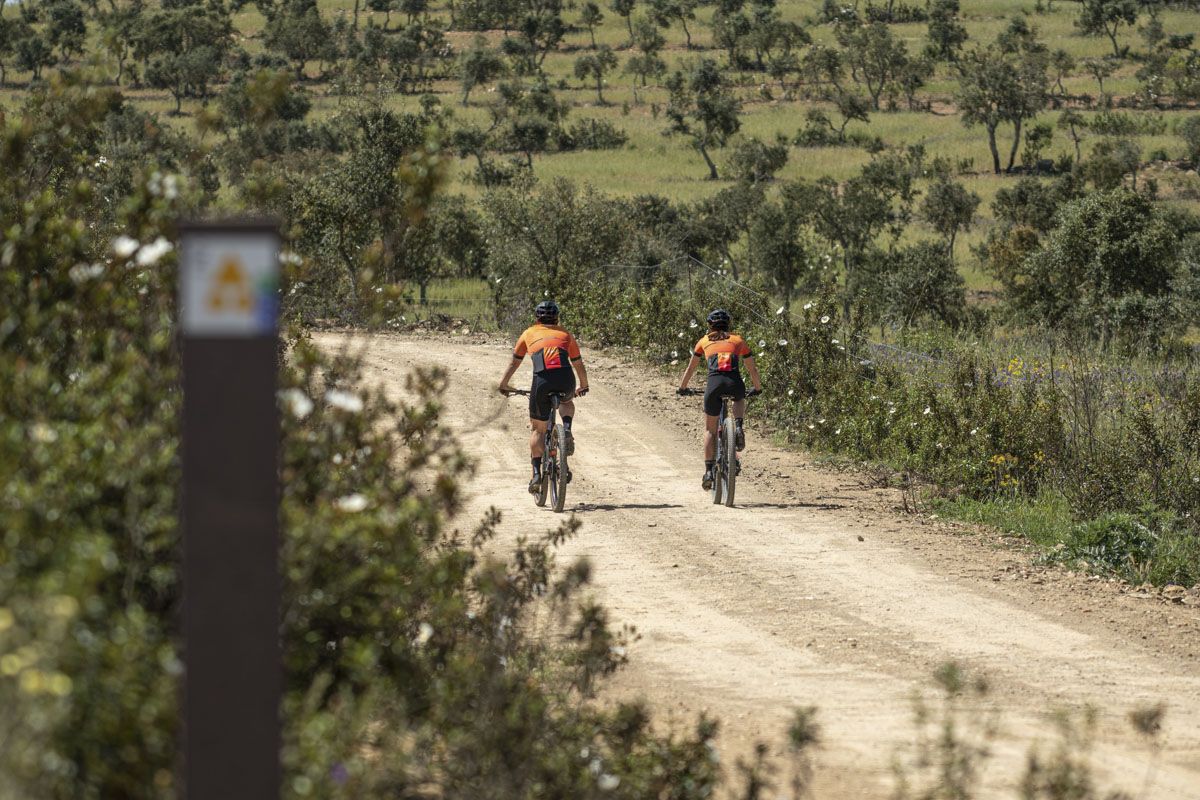 Percurso de BTT XC, com 47,6 quilómetros de extensão e 610 m de desnível acumulado de subida. Início e fim no Polo D - Baixo Alentejo do Centro de Cyclin' de Almodôvar, localizado em Almodôvar. Percurso de dificuldade elevada que percorre os caminhos rurais na envolvência da vila de Almodôvar. O grau de dificuldade é atribuído essencialmente pela distância percorrida e pelo desnível acumulado, pois os caminhos são na generalidade largos e com bom piso, à exceção de uma curta vereda com perfil um pouco mais técnico que acompanha o curso do Rio Mira. Existem alguns declives mais desafiantes, principalmente na zona serrana, mas quase sempre com grande fluidez ao longo da paisagem. A paisagem é dominada pelos montados de sobro e azinheira com vários atravessamentos do leito do rio Mira, que poderão encontrar-se condicionadas durante os períodos de maior caudal. O principal ponto de passagem é a aldeia de Santa Clara-a-Nova onde existem serviços de apoio como cafés e sanitários públicos, para além do Museu Arqueológico e Etnográfico “Manuel Vicente Guerreiro”. Este percurso é parcialmente coincidente com outros percursos deste Centro de Cycling, com diferentes distâncias e graus de dificuldade, permitindo optar por um trajeto diferente durante a atividade.