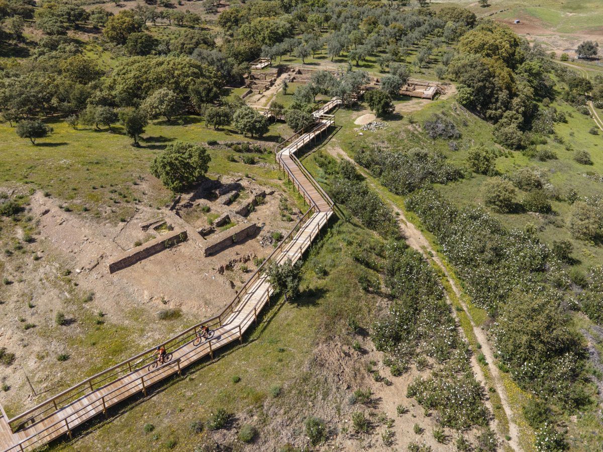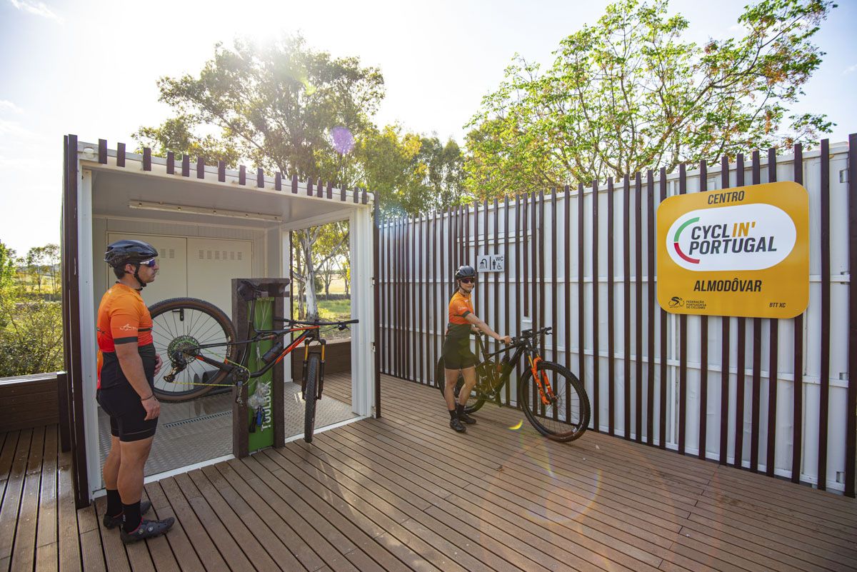 Percurso de BTT XC, com 38,1 quilómetros de extensão e 460 m de desnível acumulado de subida. Início e fim no Polo D - Baixo Alentejo no Centro de Cycling de Almodôvar, localizado em Almodôvar. Percurso de dificuldade moderada que percorre os caminhos rurais na envolvência da vila de Almodôvar. O grau de dificuldade é atribuído essencialmente pela distância percorrida, pois os caminhos são na generalidade largos e com bom piso. Os caminhos são maioritariamente em terra batida e sem desníveis pronunciados, com alguns troços em asfalto por estradas com pouco trânsito. A paisagem é dominada pelos montados de sobro e azinheira e os principais pontos de passagem são as Ruínas Arqueológicas das Mesas do Castelinho e a aldeia de Santa Clara-a-Nova onde existem serviços de apoio como cafés e sanitários públicos, para além do Museu Arqueológico e Etnográfico “Manuel Vicente Guerreiro”. Este percurso é parcialmente coincidente com outros percursos deste Centro de Cycling, com diferentes distâncias e graus de dificuldade, permitindo optar por um trajeto diferente durante a atividade.