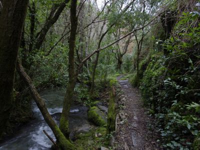 The route runs in the initial phase, together with the green route, in some narrow streets of Côja, towards the roman Bridge where it begins the tour through dirt floors, into the Parque do Vale. In this phase the trail follows the limit of the urban perimeter of Côja towards the Airfield and the area of the old ceramic industries where it leaves the green trail, going north and always on dirt roads. From this point the trail goes around the Aerodrome to the north and follows along the valley of the Alva river, at the interface of the agricultural and forestry zone, to the stone bridge over the Alva River, in Barril de Alva. Here the route reverses the direction again towards Côja, parallel to the direction to go, but at a higher elevation, allowing good visibility over the Alva Valley, passing through the "Valleys" area, until the proximity of the old industrial ceramics. In this area, the route inflects south towards Casal de S. João, through the Gândara area. In the locality of Casal de S. João the trail makes a tarmac crossing of about 0.65 km, on a little busy municipal road, leaving from a path on the right, towards the agglomeration of Pisão. The crossing of this locality is made through the old streets, passing by the church, towards the agricultural area by the way to Casal Mourão and Vale de Carro. From this zone the trail always follows the direction of Ribeira da Mata da Margaraça through agricultural tracks and a section of 0,25 km of tar to Senhora da Ribeira, where the crossing of Ribeira is made by ford or through a bridge, being found afterwards with the green trail, following an agricultural trail until the end, in Parque do Prado.