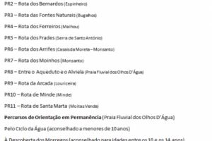 Este circuito pretende promover os recursos naturais e agrícolas da zona envolvente das Nascentes dos Olhos de Água do Alviela. O circuito tem início junto ao Centro de BTT, segue o rio pelo Aqueduto do Alviela, atravessa a ponte da Ferreira e segue até ao lugar da Raposeira. Passa por vários campos de cultivo, até chegar a Monsanto, onde se podem apreciar algumas formações cársicas, características desta região serrana, regressando à Praia Fluvial dos Olhos de Água.